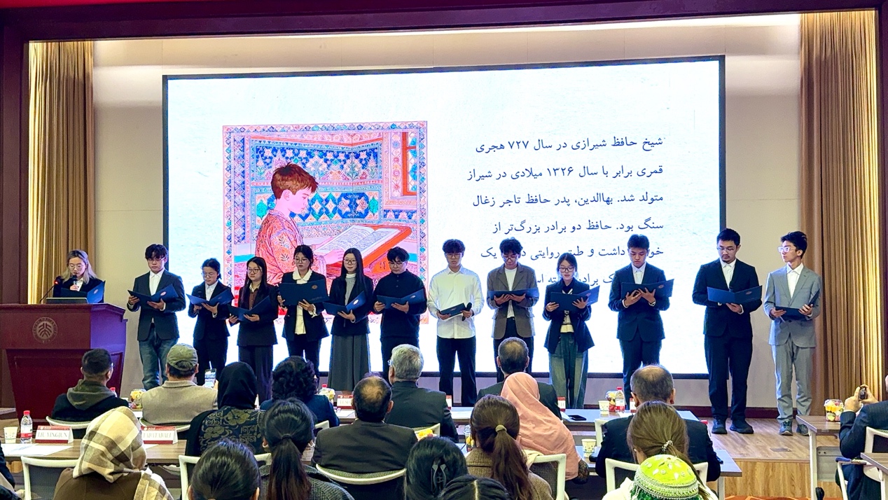During the event, students majoring in Persian at Peking University introduced Hafez's life through recitation. Faculty representatives from various universities delivered speeches exploring the philosophical depth and poetic value of Hafez's works, while student representatives paid tribute to the poet through diverse performances including recitations, theatrical pieces, and songs.