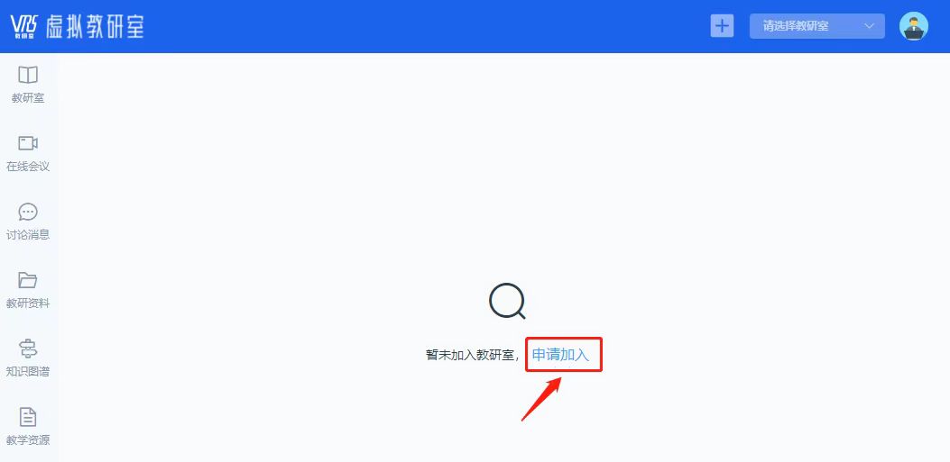 下拉菜单,选择“俄语人才培养模式改革虚拟教研室”,点击【申请】