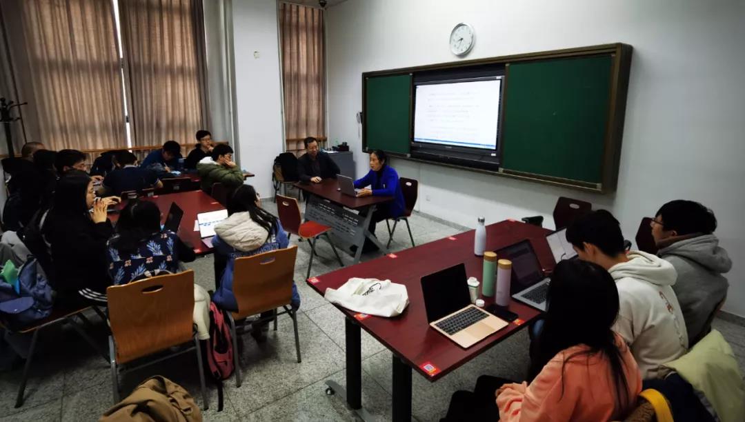 王复老师从《习近平谈治国理政》的题目翻译出发,从词语的选择以小见大,提出要在翻译中强化中国表达,提升中国话语权。例如,“中国梦”这个看似简单的词组,为什么应选择使用正偏组合,王复老师解释说,中国梦是中国人自己的梦想,是要实现中华民族伟大复兴,使用正偏组合表达更清晰,不会引起歧义。此外,王复老师还对“中国特色社会主义道路”“小康社会”“大国外交”“改革进行时”等中国特色词汇的翻译进行了细致讲解,其对翻译一丝不苟的态度令人肃然起敬。