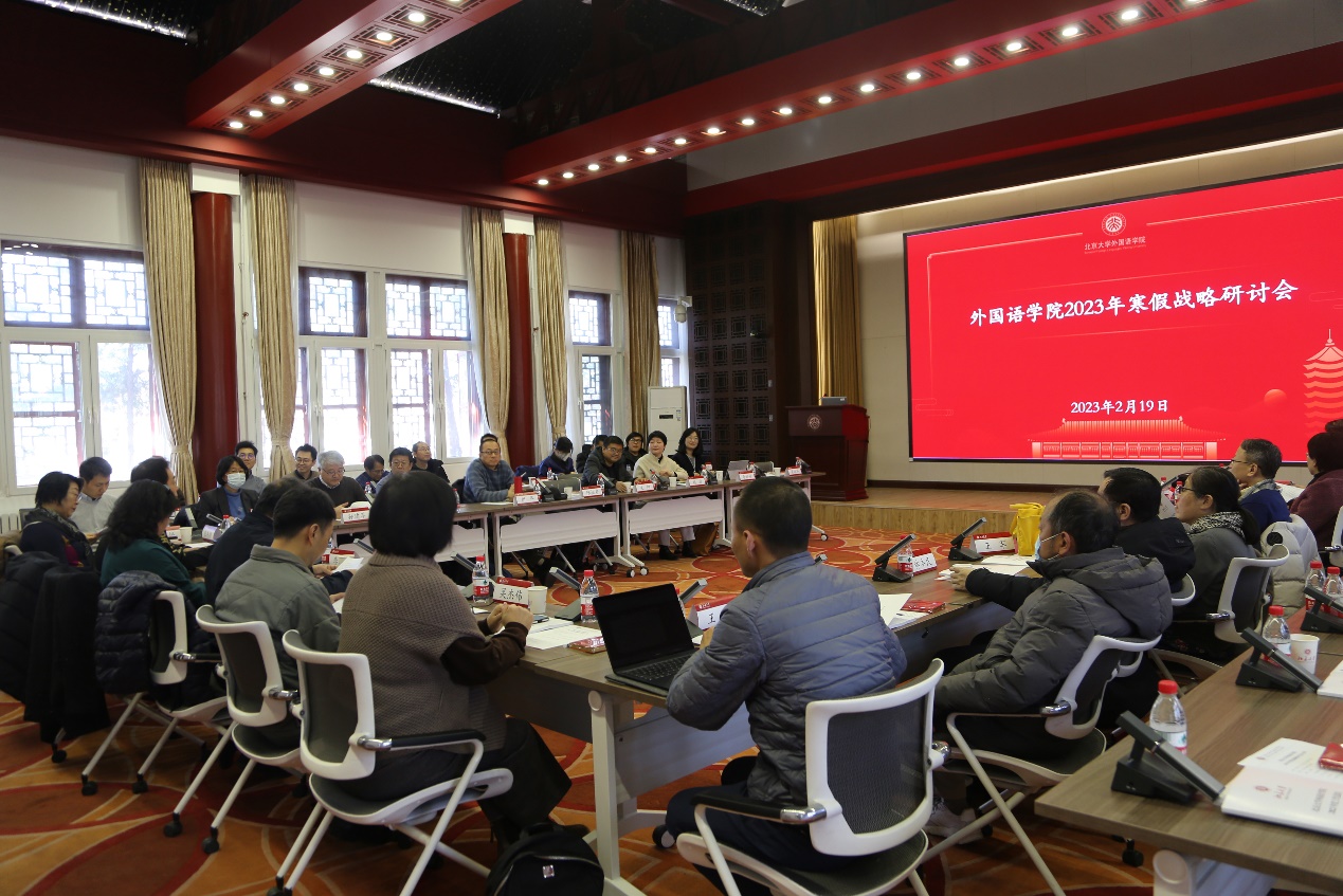 党委书记李淑静传达了刚刚结束的学校2023年寒假战略研讨会重要精神。今年是学习贯彻党的二十大精神开局之年,深入学习贯彻党的二十大精神、全力推进高质量发展是学校的工作主线。学校将2023年定为“国际战略年”,以期通过更高质量的开放办学,加强与世界交流,不断提升北大的国际化办学能力和全球声誉。外国语学院和各系(所、中心)要围绕学校发展核心任务,明确一流外语学科建设的重点工作,积极对接国家战略,全面提高外语人才培养质量,组建科研项目团队推进有组织的科研,优化引才育才机制加强师资队伍建设,发挥专业优势拓展国际交流合作,讲好中国故事,巩固北大外语学科的领先地位,持续提升北大外语人的社会影响力和国际影响力。
