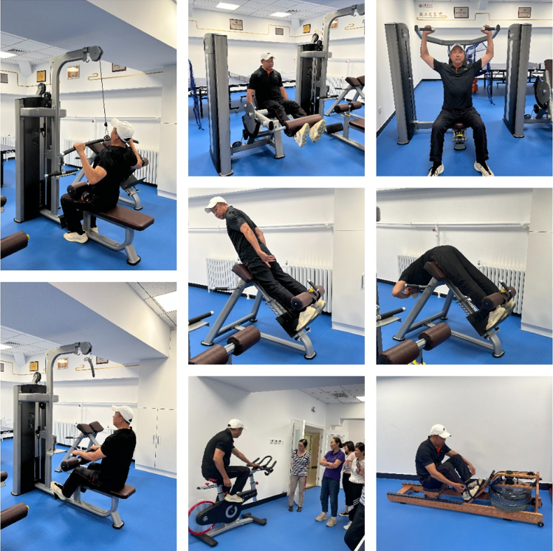 随后,穆永平老师针对不同的力量健身器材进行了使用要点讲解及实际演示。老师们认真观察、模仿,牢记老师所说的要点,特别注意自己在使用器械时的起始姿势、手握方式、用力方式等等。