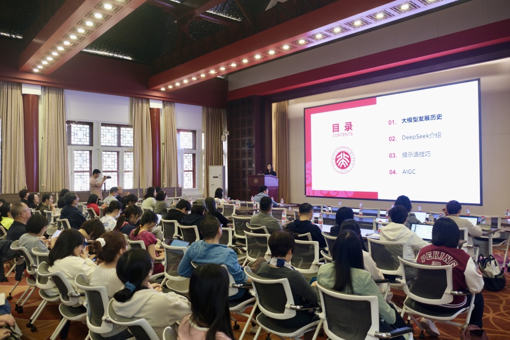 围绕北京大学“科技创新年”主题,急教职工之所急,4月11日下午,由北京大学社会科学部与外国语学院联合策划的科技赋能队伍建设活动——“DeepSeek——从入门到精通”专题讲座在民主楼208会议室举办。外国语学院党委副书记、工会主席张冬梅,党委副书记冯美娜,社科部部长、党支部书记初晓波,社科部副部长郭琳,社科部党支部副书记李净,社科部党支部、外国语学院教职工、博士后、学生100余人参加了此次活动。讲座得到北京大学大数据分析与应用技术国家工程实验室的大力支持,实验室算法专家黄晶老师担任主讲人,外国语学院助理教授张忞煜担任主持人。