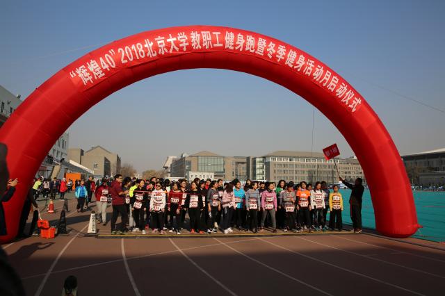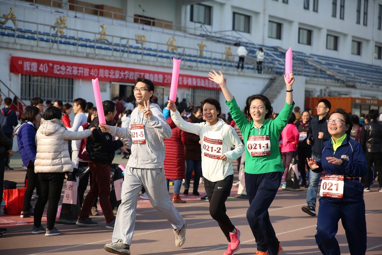 为纪念改革开放四十周年,外国语学院教师纳海、林琳、于施洋、王爱京代表我院参加了北京大学工会组织的“’辉煌40’ 2018北京大学教职工健身跑暨冬季健身活动月启动仪式”的活动。她们于2018年11月30日中午在五四操场上合力长跑40圈。在此次活动中,我院教师充分发挥了奋勇拼搏,勇往直前的精神,轻松完成了16000米的长距离。