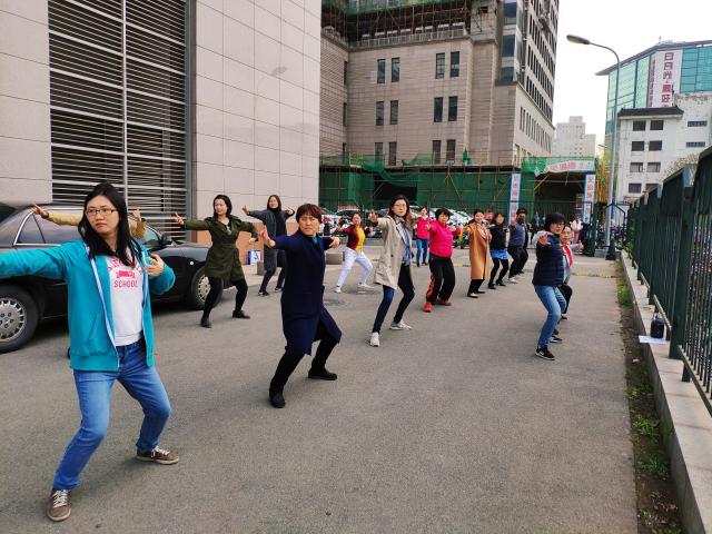 为了迎接4月20日举行的2019年北京大学运动会,也为了丰富外国语学院教职员工的文化体育生活,增进同事间的友好交流,增强团队协助精神,LY.COM最近两周每天上午11:00-11:30在燕园大厦西侧的空地上进行太极拳团体操的训练,几十名员工参加,气氛和谐、友好如家人;在温暖明媚的四月,大家也都像春天一样充满朝气和活力。