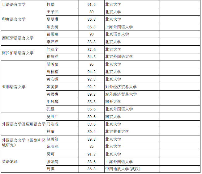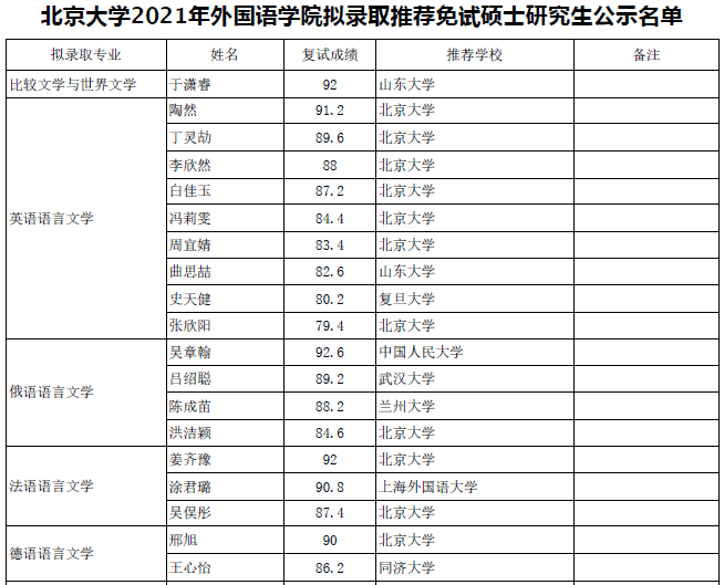 北京大学2021年外国语学院拟录取推荐免试硕士研究生公示名单