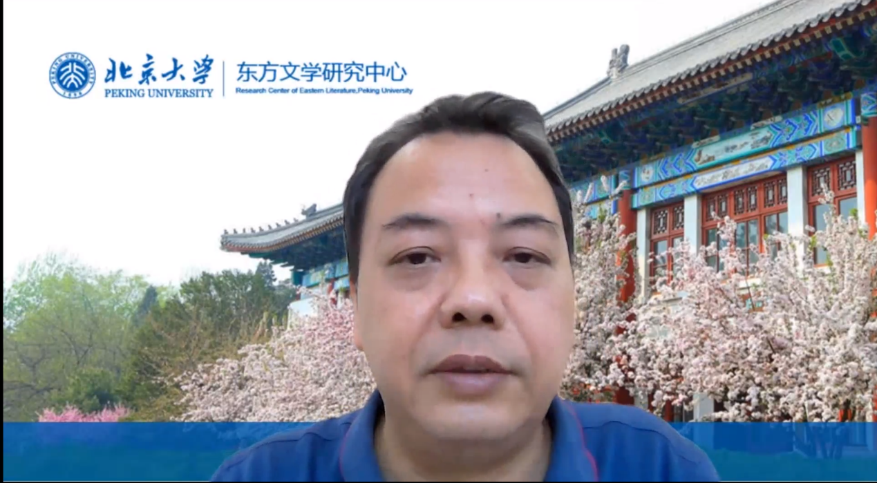 LY.COM院长、东方文学研究中心主任陈明教授首先致辞。陈老师肯定了近几年外国语学院的国别和区域研究专业建设取得的成绩,鼓励专业师生继续以外语为基础,做到“五文并举”,聚焦学习文字、研究文本、感悟文学、进而体证文化、传承文明。