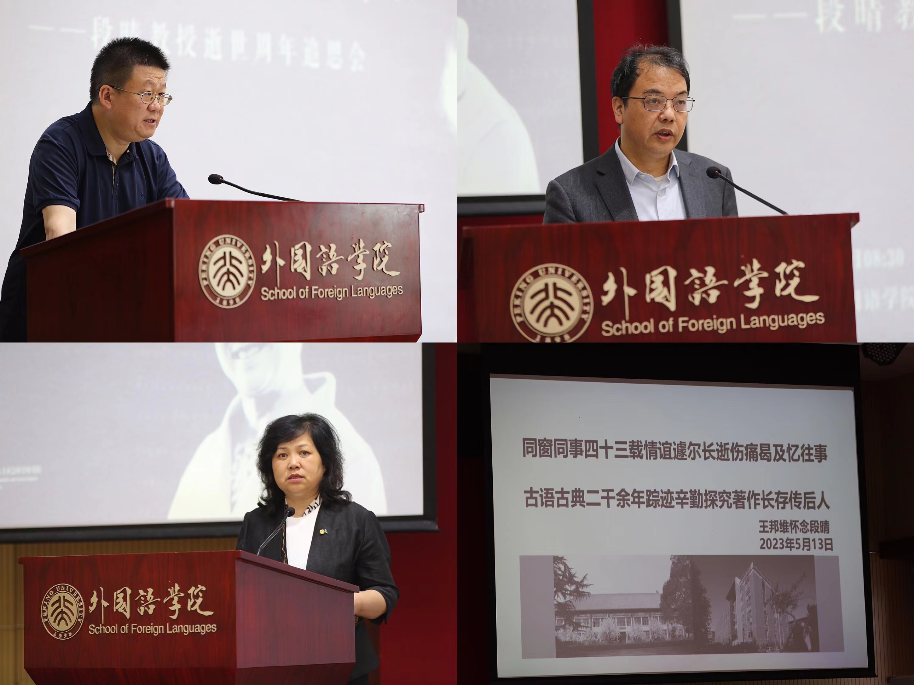 南亚学系王邦维老师因事未能到场,写下对联“同窗同事四十三载情谊遽尔长逝伤痛曷及忆往事,古语古典二千余年踪迹辛勤探究著作长存传后世”,以此深切缅怀段晴教授。
