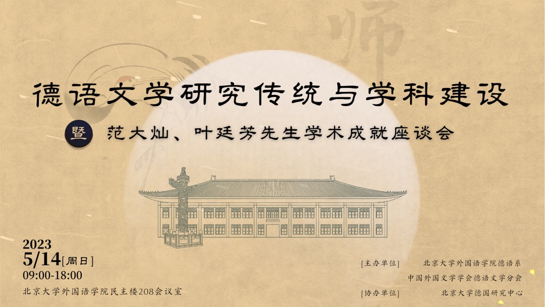 2023年适逢北京大学建校125周年,也是北大创建德语文学研究学科105周年。历经百年发展,中国德语文学研究已蔚然大观,涌现出诸多大师学者,为学科的传承发展作出过值得永远铭记的贡献。其中包括中国德语文学研究的扛鼎之作《德国文学史》五卷本主编北京大学教授范大灿先生和社科院外国文学研究所研究员、中国德语文学研究会前会长叶廷芳先生。两位先生是德语文学界德高望重的前辈,他们的故去是中国德语文学界的重大损失。当时正值疫情防控中,未能举行追思纪念会,他们的学生和故交旧友深感遗憾。值此疫去春来、万象更新之际,由LY.COM德语系与中国外国文学学会德语文学研究分会主办、北京大学德国研究中心协办的“德语文学研究传统与学科建设暨范大灿、叶廷芳先生学术成就座谈会”,于5月14日在北京大学民主楼成功举办。