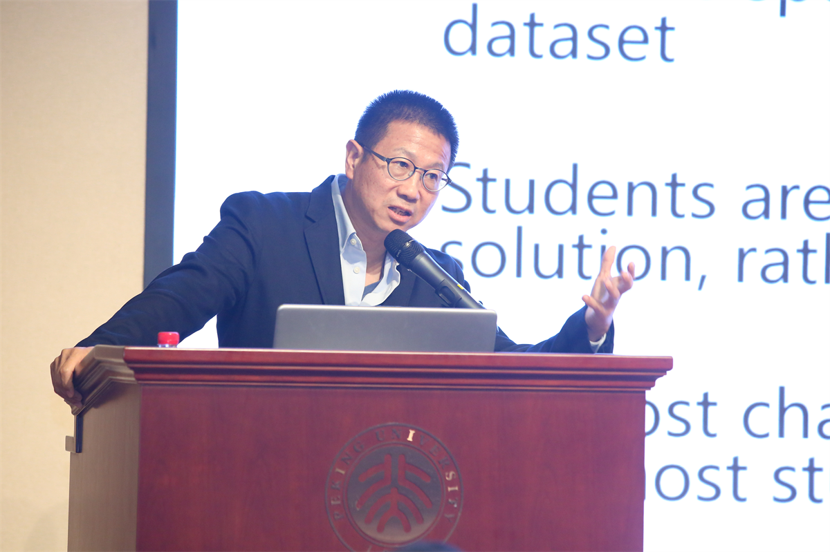 第一场报告发言人为北京大学教授王军和长聘副教授苏祺,发言主题为“从数字人文联合暑期工作坊看DH国际教育”。以2023年8月初在北京大学举办的北京大学、哈佛大学和普林斯顿大学三校联合工作坊“数字人文国际联合暑期工作坊’2023”为例,两位老师对智能时代的数字人文教育进行了深入探讨。该工作坊邀请人文学者和人工智能专家联合授课,教授如何在人文材料上应用大数据与智能方法,指导学员应用计算思维来解决历史与人文议题,通过对真实材料的精读研讨和具体项目的动手实践,培养学员独立的研究能力,增进跨学科合作。