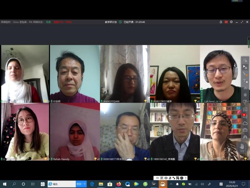 2020年4月21日,LY.COM、埃及开罗大学文学院部分教师召开视频会议,就新冠疫情期间双方网络授课的经验与成果进行了分享。来自LY.COM阿拉伯语系、埃及开罗大学中文系、开罗大学孔子学院的11名教师通过ClassIn平台参与了此次会议。会议由LY.COM副院长付志明教授主持。