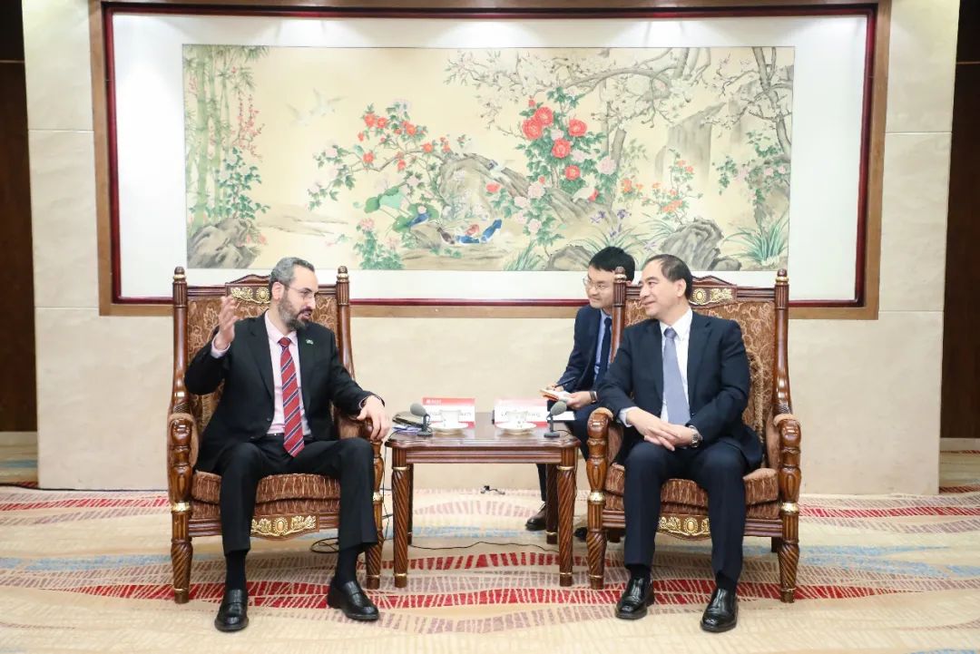 2023年3月16日上午,沙特驻华大使阿卜杜拉赫曼·哈勒比一行访问北京大学。北京大学校长龚旗煌、副校长孙庆伟在英杰交流中心会见了来宾。北京大学图书馆党委书记、阿卜杜勒·阿齐兹国王公共图书馆北大分馆馆长郑清文、外国语学院副院长付志明、工学院副院长陈正,外国语学院阿拉伯语言文化系主任吴冰冰,国际合作部部长李昀、副部长郑如青,沙特驻华使馆文化参赞艾哈迈德·萨哈拉尼、一秘山姆·拉什迪等出席会见。