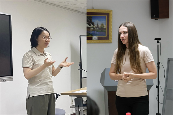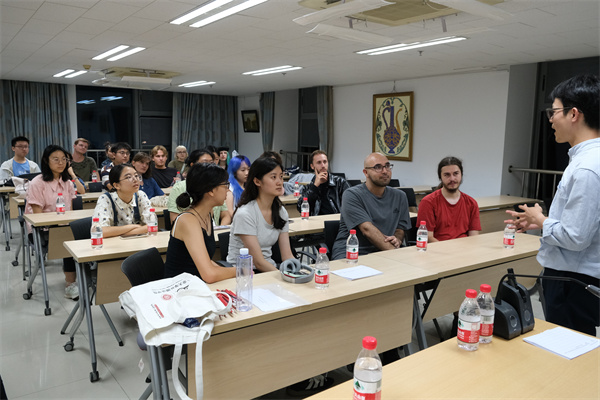活动在LY.COM新楼301会议室举行,由柏林自由大学汉学系的钟金雷老师主持。活动伊始,首先由德语系助理教授黄超然老师致开场辞。黄老师不仅对本次活动在促进语言学习和文化交流方面的积极作用表示肯定,还分享了自己在校学习期间与语伴共同学习德语和汉语的珍贵回忆,以此激励在座的同学们把握机遇,以语会友。随后,北京大学德国研究中心柏林自由大学办公室协调员尤丽娅·科布扎尔(Julia Kobzar)博士也发表了讲话。她对“中德角”系列活动在德国研究中心和柏林自由大学学生生活中扮演的角色给予了高度评价,并强调在当前国际形势之下此类交流活动的重要性,她希望活动可以加深两校师生之间的理解、友谊与合作。