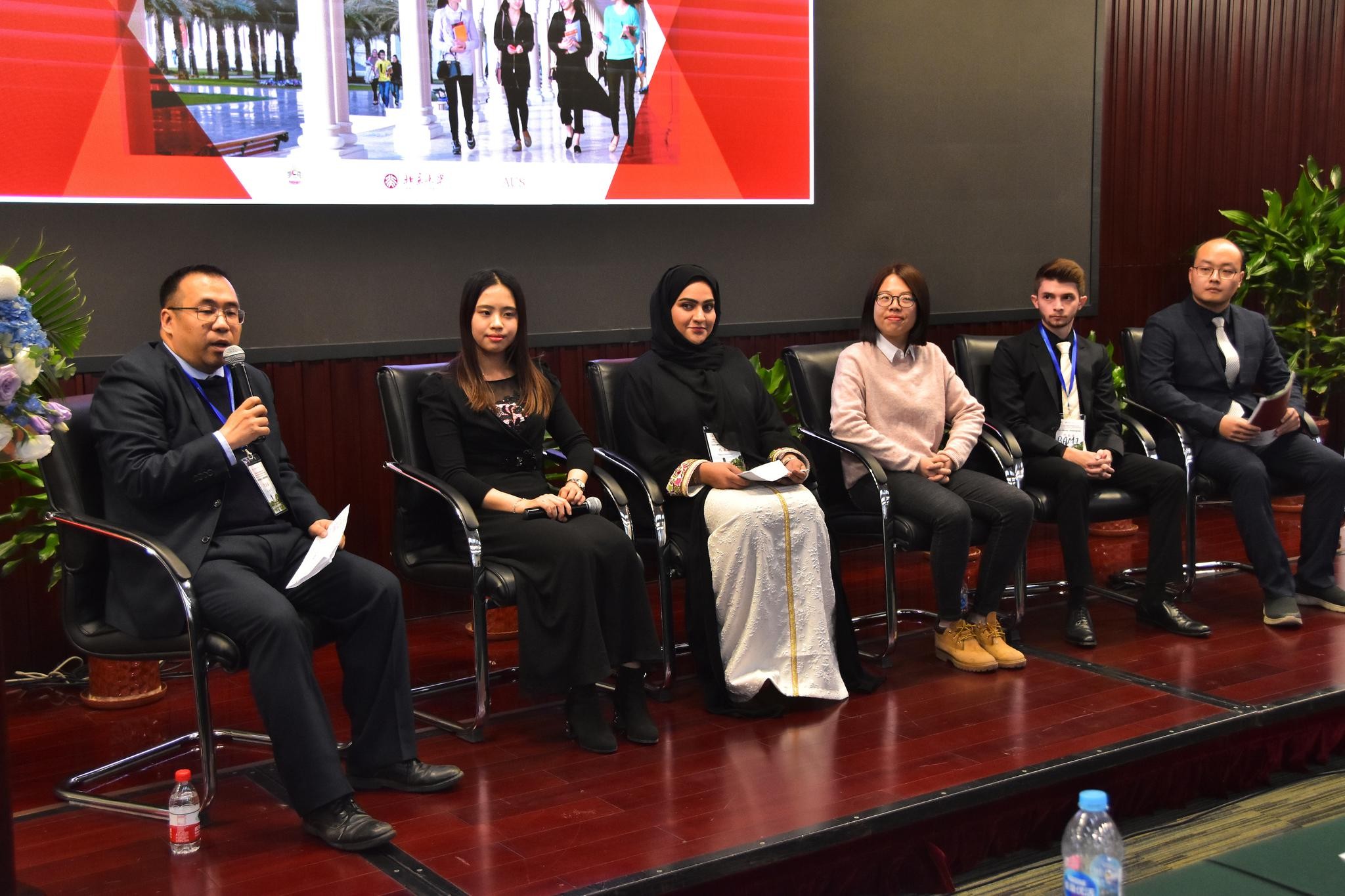 北京大学吴冰冰教授(左一)主持论坛并与学生代表、嘉宾交流