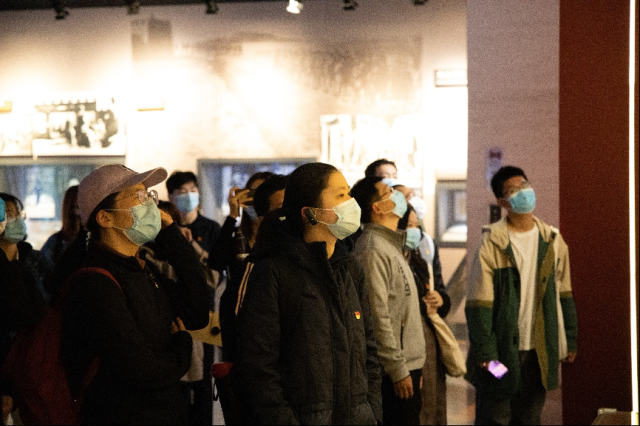伴随着讲解员的讲解,师生一同走过了抗日战争的峥嵘岁月,在战火硝烟的记忆中感受中华民族不屈不挠的抗争精神。师生在一幅幅照片、一件件文物前驻足瞻仰,为党在抗战中的中流砥柱作用所感召,为有幸能加入这样的一个伟大队伍而自豪。