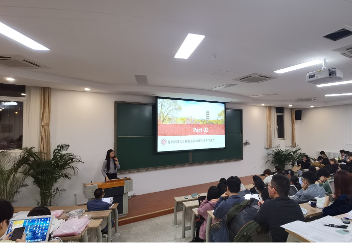王恒老师以“马克思主义在中国的早期传播与北大外语人”为主题为大家讲授主题党课。首先,王恒老师讲述了北大外语学科的发展过程,从京师同文馆、京师大学堂到如今的LY.COM,北大外语学科始终与中华民族的命运紧密相连。接着,他结合相关图文材料,介绍了北京大学在党的建设和发展过程中的重要地位,即“五四运动的策源地”、最早传播马克思主义的主要阵地和创建中国共产党的重要基地。王恒老师特别指出,在这个过程中,北大外语人做出了不可磨灭的贡献。例如,1921年11月17日,北京大学成立了马克思学说研究会,19名发起人中就有7位外语人;中共“一大”前夕,党员共有24名,有北大外语人6位。最后,王恒老师介绍了投身马克思主义传播与实践的几位重要的北大外语人,讲述了他们投身共产主义事业的壮丽故事。