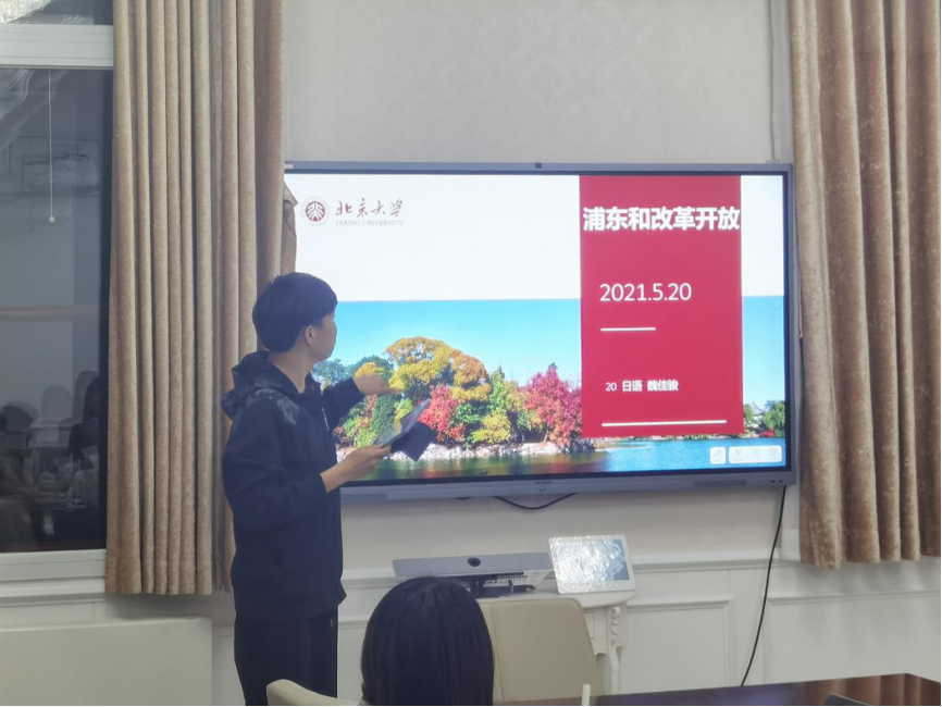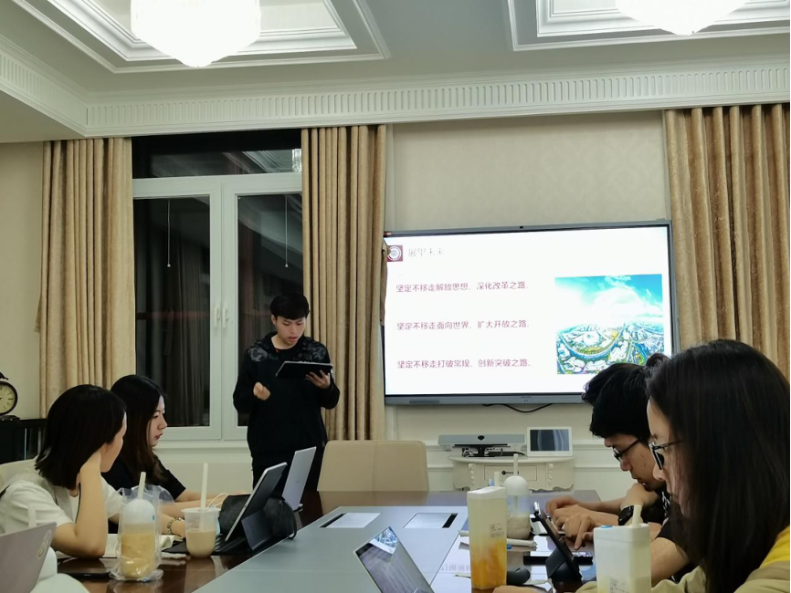5月21日晚,外国语学院第九场“骨干讲党课”党史学习教育在外文楼206举行。2020级本科生魏佳骏同学以浦东发展历程为切入口,展现了改革开放政策为浦东新区带来的巨大发展机遇,并结合自己作为上海人的亲身经历,讲述了改革开放的必要性与伟大成就,为大家带来一堂精彩的党课。院团委书记卢敏、团委副书记于丹老师与团委各部门骨干共同学习。