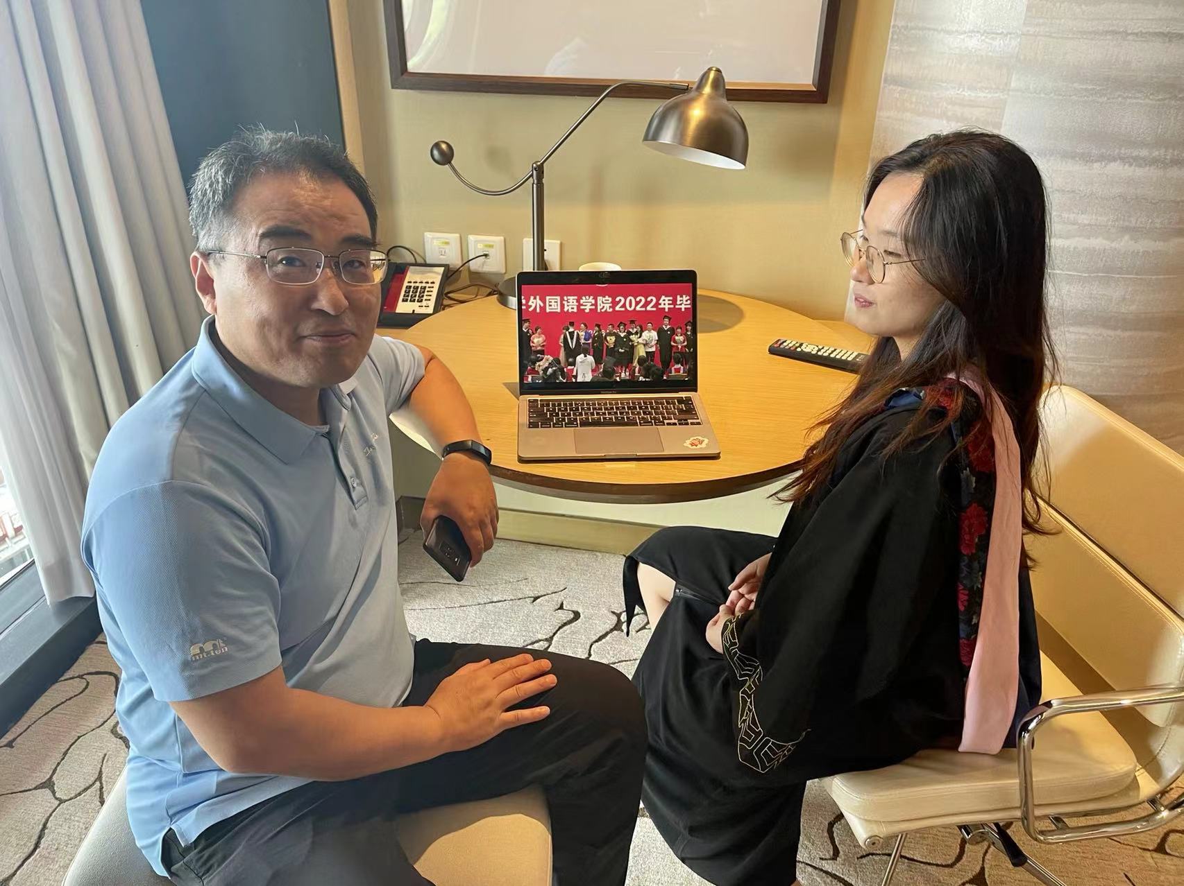 本次毕业典礼在校内门户燕云直播平台同步播出,部分毕业生和家长在家一同观看典礼,共同见证外国语学院2022届本科毕业生圆满完成学业,开启人生新篇章。