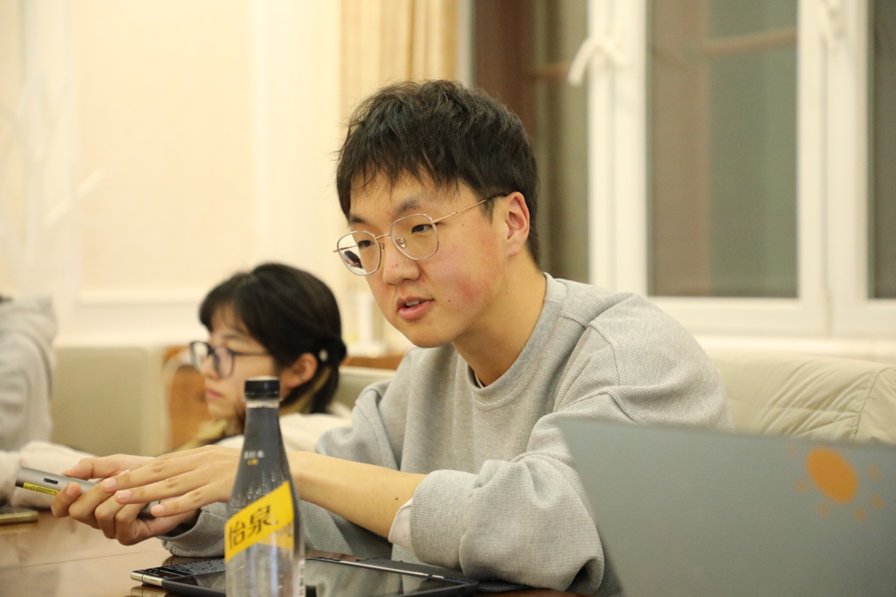 带班辅导员、2022级硕士生吕润洋介绍了自己谈心谈话工作开展的情况。他谈到,每个月集中于一个年级,能够更有针对性、更集中地了解和解决某个班级的问题,并建议在开始对某个班级的谈话前,先与该班级的班长或团支书提前了解班级的课程学习、班级事件等基础信息。此外,针对单次谈心谈话无法实现长期的观察和持续的跟进的缺陷,他建议各位带班辅导员可以通过发掘与同学们的共同兴趣爱好,与同学一起进行爱好实践活动,或者与课程的老师或助教取得联系,获取更多的信息。