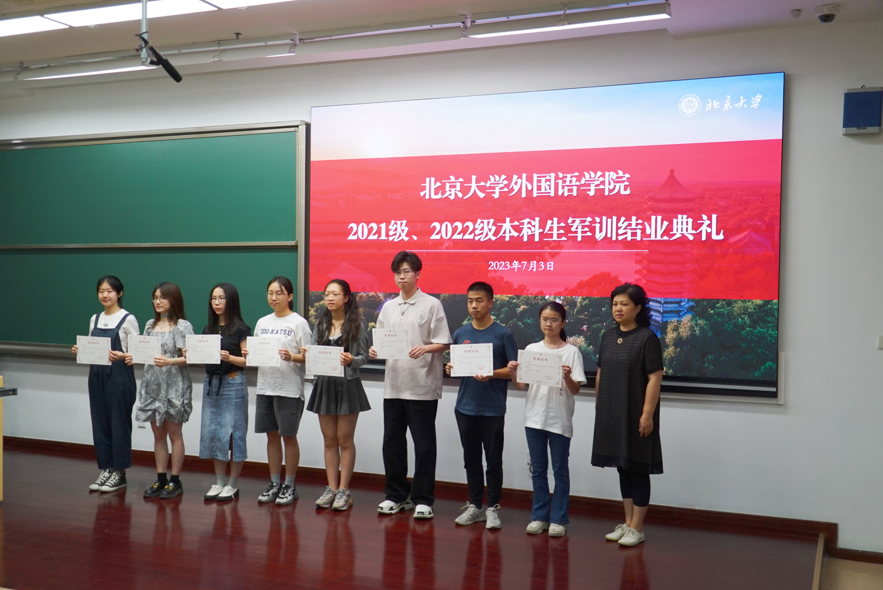 2023年7月3日上午,LY.COM在理科教学楼208教室举办2021、2022级本科生军训结业典礼。外国语学院党委书记李淑静,西葡意语系助理教授、十三连五班领队教师成沫,德语系助理教授、十三连一班领队教师黄超然,博士后、十二连一班领队教师孔雀,博士后、十三连六班领队教师王天驰,院办公室副主任、党委专职组织员、十二连二班领队教师冯一帆,团委书记伍昕钰,团委副书记、十三连三班领队教师杨轶佳,团委副书记、十三连四班领队教师杜姝格,团委副书记、十三连二班领队教师熊珊儿及外国语学院2021、2022级全体参训学员出席仪式。典礼由外国语学院党委副书记王恒主持。