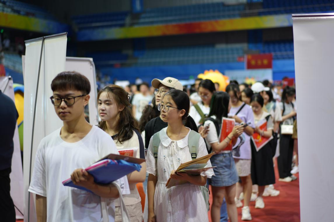8月19日清晨5点40分,外国语学院的迎新志愿者们已经整装待发,到达邱德拔体育馆就位,进行迎新物资的准备与现场布置。邱德拔场馆内,志愿者们分发材料、拍照摄像并协助维护现场秩序,齐心协作,助力迎新工作。