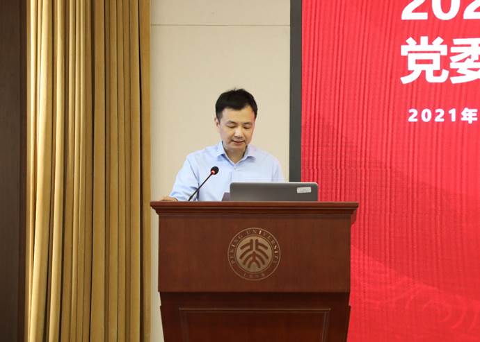 会议第二项,开展2021年度北京大学优秀共产党员、优秀党务工作者和先进党组织评议。申报支部进行了现场汇报,就候选人工作学习情况、模范带头作用、成长目标等方面进行介绍,就候选支部组织生活情况、发展党员工作、党员日常教育管理、创新特色工作等内容进行展示。与会人员在听取汇报的基础上进行投票。