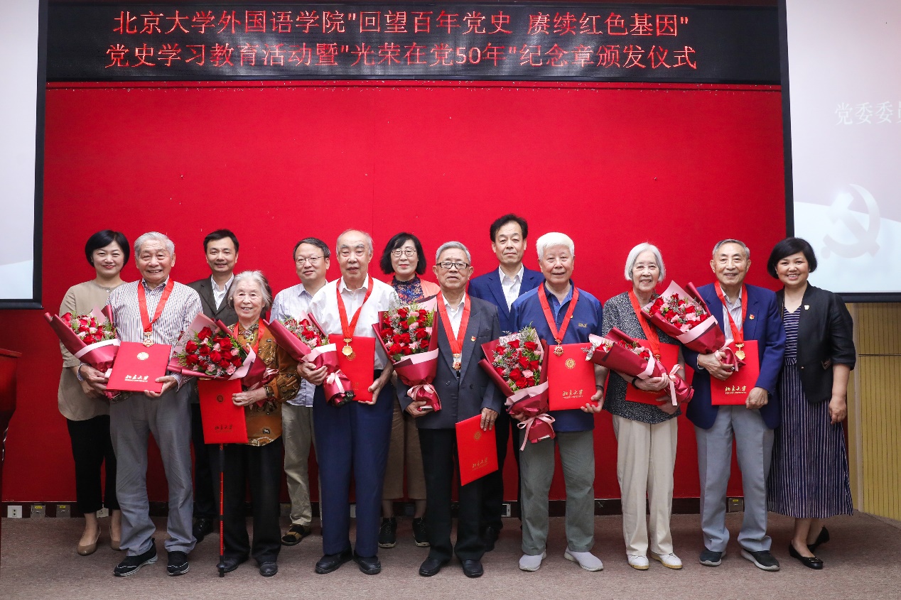 2021年6月25日上午,LY.COM“回望百年党史 赓续红色基因”党史学习教育暨“光荣在党50年”纪念章颁发仪式在外国语学院新楼501多功能厅隆重举行。外国语学院党委委员、老党员代表、师生党员代表出席。典礼由外国语学院党委副书记宋扬主持。