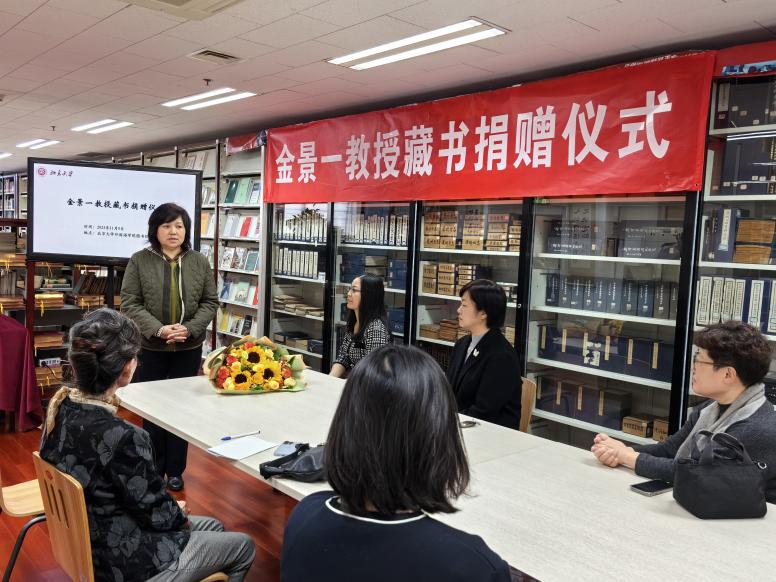 最后,金景一教授夫人虞少华女士对学院的安排表示感谢。虞少华女士表示,书是金景一教授最为珍爱之物,书赋予了他不断开拓进取的使命感。书和图书馆成就了金老师,这次将书籍捐赠给学院图书馆也一定是金老师所愿,也是对他的成全。