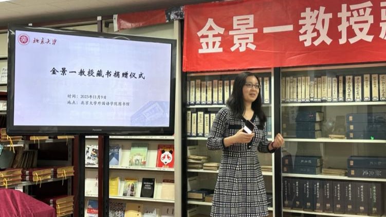 张晓雁在主持词中表示,金景一教授捐赠书籍中包含诸多绝版书籍,将对学院图书馆建设和师生学习有所裨益。图书分馆会在图书实物和借阅系统中做特殊标记,希望同学们借阅时能够不忘来处,让金景一教授的治学精神得以传递。