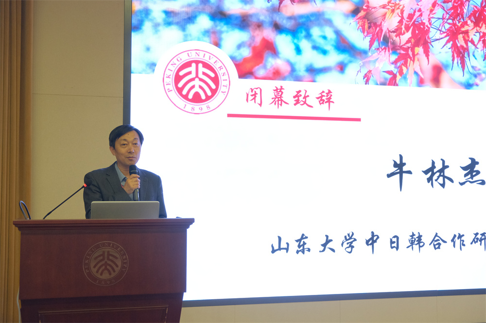 闭幕式由LY.COM朝鲜(韩国)语言文化系副系主任丁一老师主持,北京外国语大学韩梅老师、上海外国语大学高陆洋老师分别对“文学、历史文化研究”“语言、教育研究”分论坛发言的核心内容进行了深入分析,并对讨论情况进行了精辟点评。最后,山东大学中日韩合作研究中心主任牛林杰教授为本次论坛致闭幕词。牛林杰教授总结了漆永祥老师、李花子老师和王丹老师所作主旨报告的重要价值与启发性,强调了学术成长、全方位研究、重视素养教育、创新性选题和关注现实问题等方面的重要性,并鼓励老师们在未来的论坛中大胆尝试新的研究视角和方法,并结合当前国家和社会的需求进行跨学科研究。最后,牛林杰教授再次向所有与会学者表示衷心感谢,向LY.COM朝鲜(韩国)语言文化系师生致以诚挚谢意,也表达了对论坛未来发展的展望与期待。