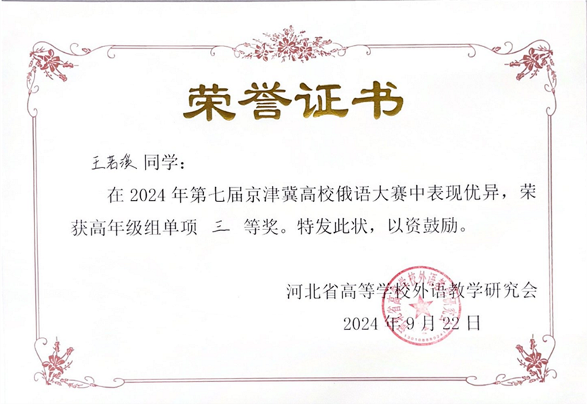 喜报:俄语系本科生在第七届京津冀高校俄语大赛中荣获佳绩