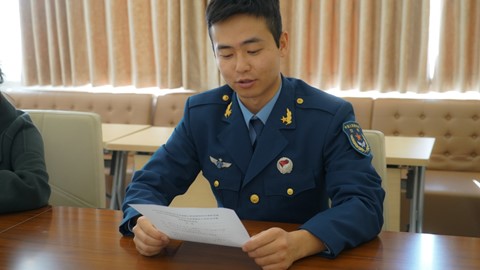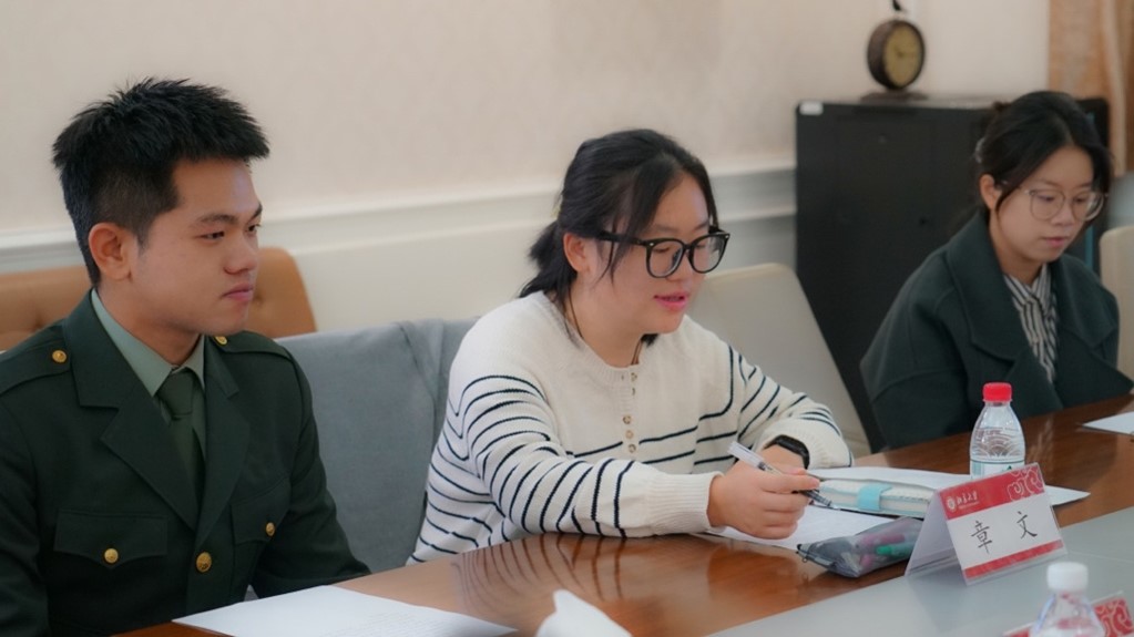 作为法语系的代表,章文鼓励王勇积极适应回归后的校园生活,系里也将倾心为其成长成才保驾护航。此外,对于更多心怀参军入伍梦想的同学,章文老师鼓励大家坚定信念,付诸实践,身体力行“世界在我脚下,祖国在我心中”的誓言。