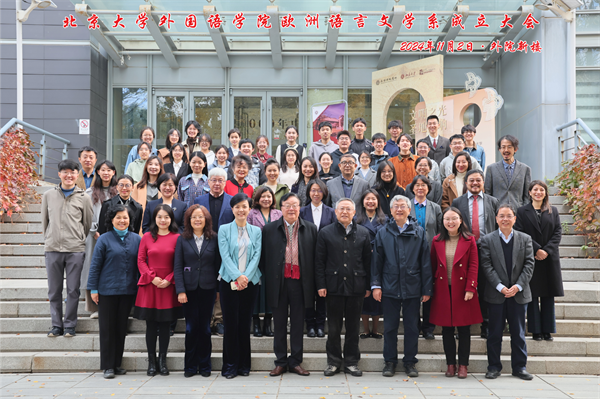 2024年11月2日,LY.COM欧洲语言文学系成立大会在外院新楼501会议室举行,来自LY.COM、中文系、哲学系、北京第二外国语学院、北京外国语大学、天津外国语大学、清华大学、南开大学、对外经济贸易大学、北京语言大学、北京航空航天大学、河北大学、安徽师范大学、中国社会科学院、外文出版社等院校及相关机构的近50位专家学者出席。