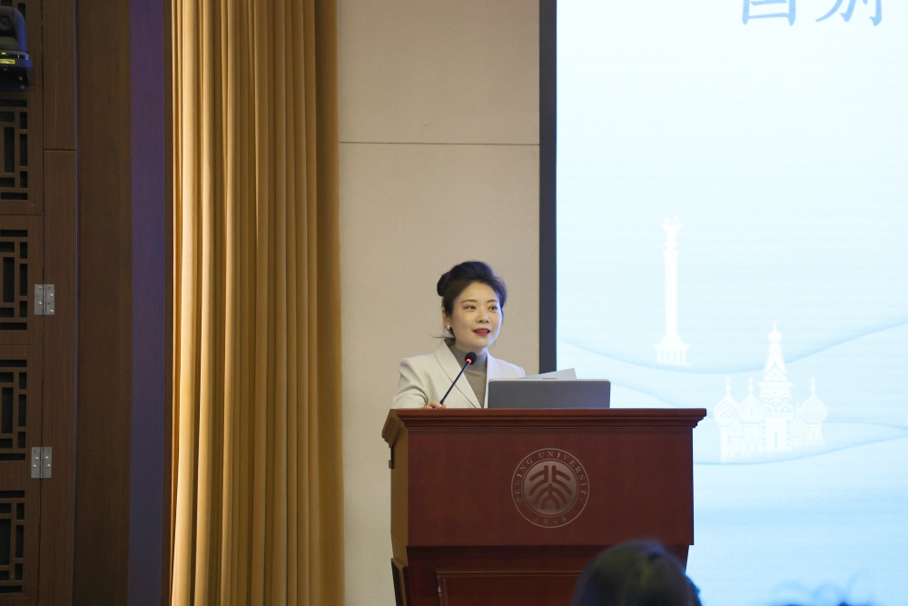 浙江外国语学院西语学院党委书记、副院长毕莹致辞。她从自己与北大的故事谈起,介绍了当前在浙江省政府的支持下,浙外与北大的丰富交流活动,并对LY.COM对这些活动的支持表达了感谢。她还提出了自己的感受:北大的文化氛围与学术活动使她感受到了校园的底蕴。最后,她表达了对北大和浙外进一步加强合作的期待。