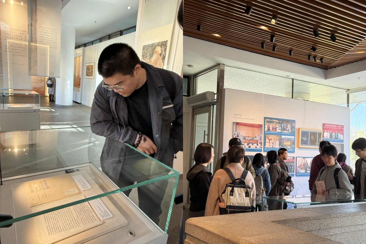 展览以1924年泰戈尔访华百年为时空坐标,通过四篇章梳理了北大印度学科的世纪发展脉络,历史褶皱中的学术坚守纤毫毕现。参观过程中,同学们深刻地感受到了书籍著作中凝聚的学者心血,感知到了照片与绘画背后的中印文化交流脉络。展览带领学生们走进那个激情澎湃的年代,几代学人用百年光阴架设起文明互鉴的学术桥梁。北大前辈学者开拓学术的赤诚与勇气使同学们深受触动,中印文化交流事业也在他们心中留下了更深的烙印。