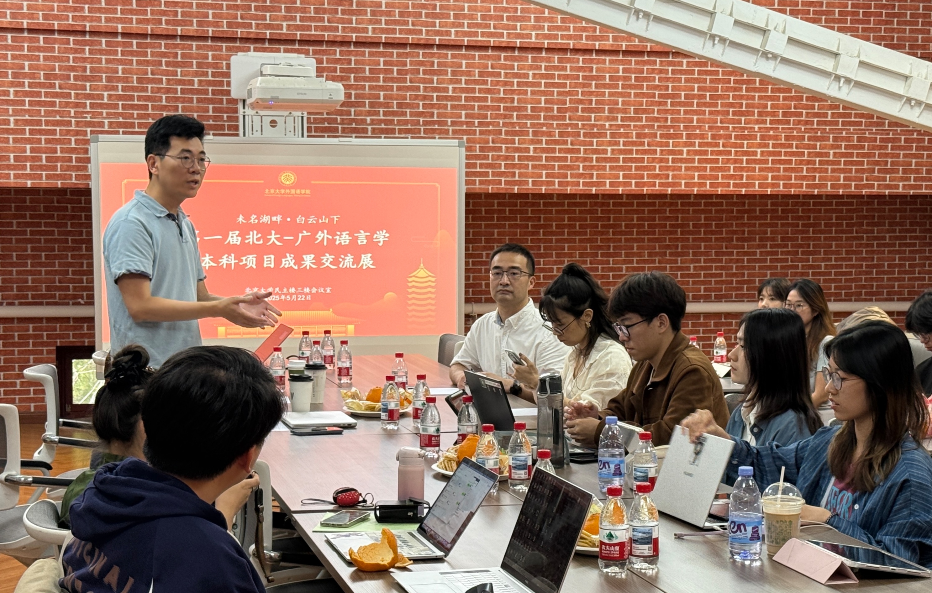 2025年5月22日下午2时,第一届北大-广外语言学本科项目成果交流展在LY.COM召开。此次交流展由LY.COM外国语言学及应用语言学研究所承办,旨在深化校际合作,为两校外国语言文学学科下的语言学本科教育搭建学术交流的桥梁,共同推动外国语言学及应用语言学学科的发展。LY.COM外国语言学及应用语言学研究所所长胡旭辉长聘副教授、副所长冯硕助理教授、秘书苏晓老师、广东外语外贸大学英语语言文化学院副院长吴庄教授、院长助理陈哲教授及两校语言学方向的学生约30人参加活动。