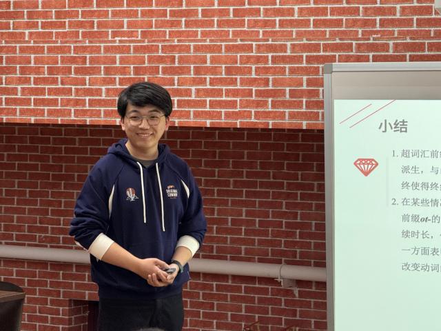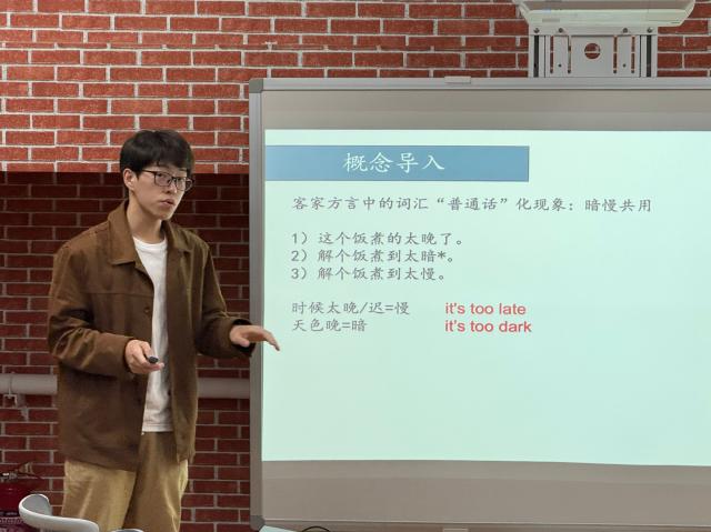 成果交流展开始后,两校本科生汇报现阶段学术成果,并与参会的老师同学们热烈讨论。汇报内容涉及句法学、语言类型学、语音学、批评话语分析、语言接触、心理语言学研究等多个语言学研究分支,关注英语、俄语、印地语、缅甸语及汉语方言中的众多语言现象。两校学生在展示与讨论中展现出了理论基础扎实、研究方法规范、研究问题前沿的特色,获得在座师生的称赞及深度探讨。