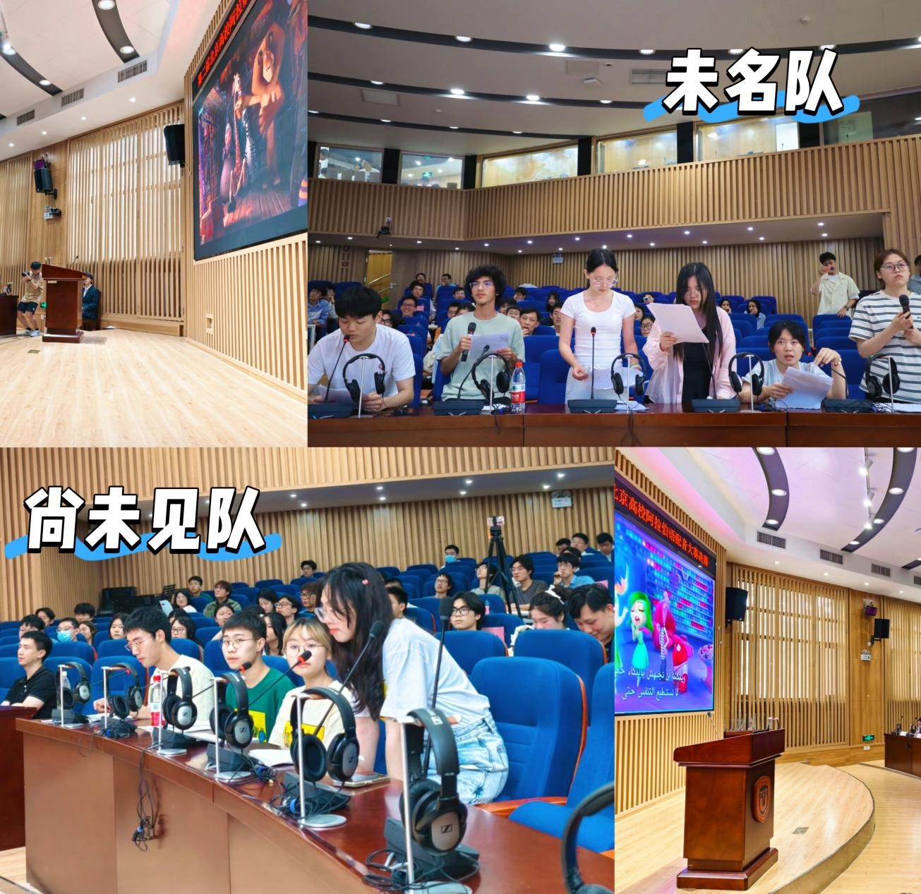 比赛分为自选片段和固定片段配音两个环节,来自五所高校的10支代表队同台竞技。北京大学派出“尚未见队”与“未名队”两支新生代表队参赛,由阿拉伯语系2024级10名本科新生组成,博士后孔雀老师担任赛事评委。