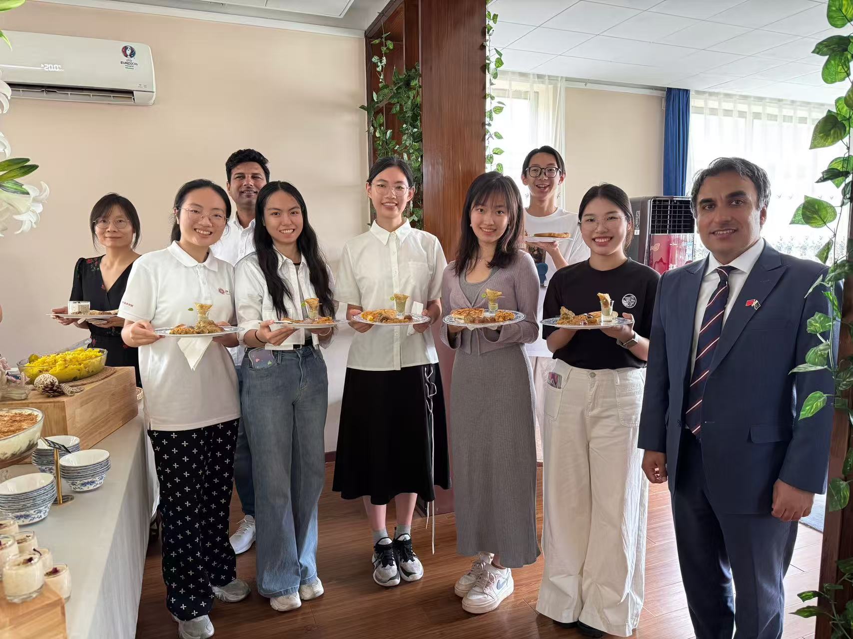 7月1日,LY.COM乌尔都语专业师生应巴基斯坦驻华大使馆副馆长比拉尔先生(Bilal Mahmood Chaudhary)邀请,前往其官邸做客。双方就中巴友好交流、乌尔都语学习等话题展开交谈,共叙中巴传统友谊佳话。乌尔都语专业教师张嘉妹、张亚冰,巴基斯坦籍专家阿舍得(Arshad Bhatti)带领专业部分学生应邀参加了此次交流活动。