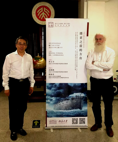 2018年6月6日,英国著名亚述学家、权威的楔形文字文献专家、大英博物馆研究策展人芬克尔博士,受北京大学古代东方文明研究所和外国语学院西亚系的邀请,在北京大学外文楼,为北大师生和古代文明爱好者,做了一场题目为“诺亚之前的方舟”精彩报告。