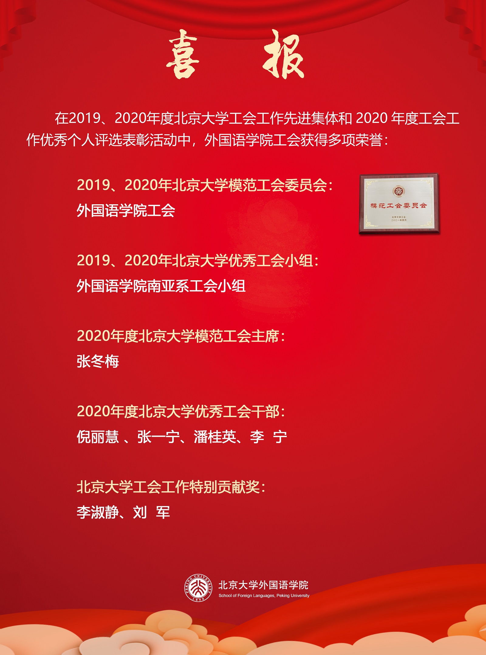 喜报:外国语学院工会获北京大学工会多项表彰