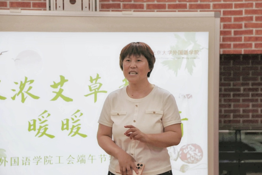 6月5日下午,为迎接端午佳节,感悟传统民俗,弘扬传统文化,丰富学院教职员工文化生活,外国语学院工会在民主楼三层活动空间以“浓浓艾草香 暖暖端午情”为题举行艾草按摩锤DIY活动。活动由工会常务副主席倪丽慧主持,院党委副书记、工会主席张冬梅老师出席,学院教职员工二十余人到场参加,体悟端午习俗,传承优秀传统文化。本次活动由宁波银行北京分行赞助。