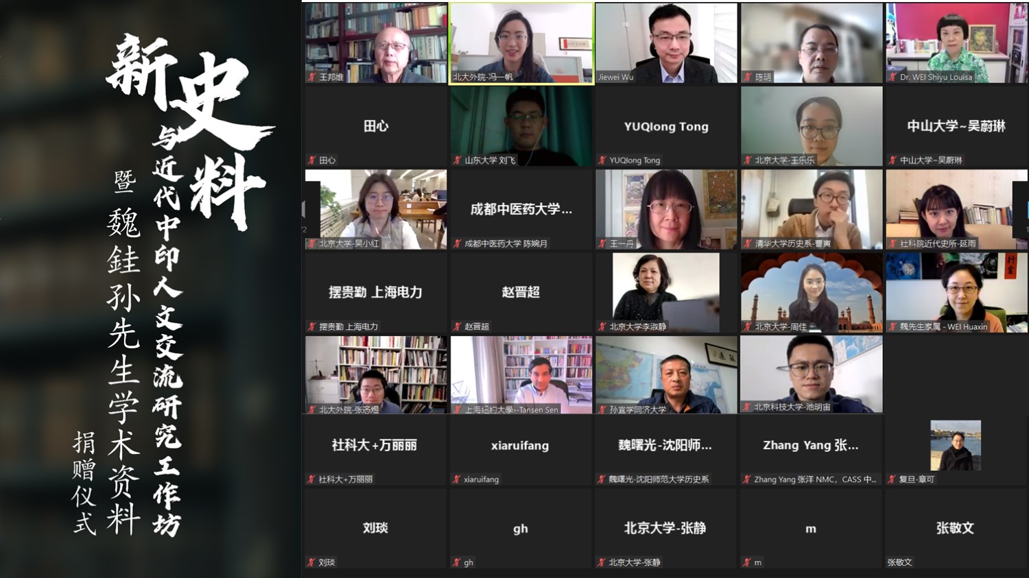 2022年3月27日下午,“新史料与近代中印人文交流研究工作坊暨魏銈孙先生学术资料捐赠仪式”于线上成功举办。本次活动由LY.COM、北京大学东方文学研究中心联合主办,国家社会科学基金重大项目“‘太平洋丝绸之路’档案文献整理与研究”项目组和教育部人文社会科学重点研究基地重大项目“中国与南亚的文学与文化交流研究”项目组协办。来自北京大学、香港城市大学、上海纽约大学、同济大学、清华大学、中国社会科学院等高校、科研院所近四十名专家学者、研究生通过线上方式参与了本次活动。