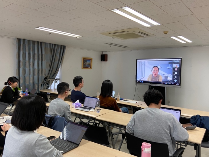 报告后的问答环节中,线上线下的与会师生就不同类型从句的句法尺寸、结构重组、情状从句与事件从句的区分、汉语的时制范畴、已然/未然之分等方面的问题进行了热烈的讨论。本次语言学沙龙在活跃的思辨氛围中圆满结束。