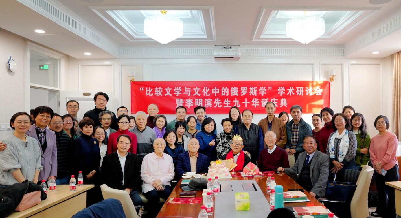 12月9日下午,各参会嘉宾围绕各自主题,分5组进行深入讨论。与此同时,北京大学知名俄罗斯学家李明滨先生九十华诞活动在外文楼206分会场同步进行。北京大学查晓燕、张冰教授主持了讨论。来自北京大学、中国社会科学院、外交部、财政部、大连外国语大学、北京外国语大学、北京语言大学、广州外语外贸大学、黑龙江大学、山东大学、北京师范大学、天津师范大学、外交学院、中国传媒大学、北京印刷学院、商务印书馆、人民文学出版社、北京人民出版社等多家单位的专家学者、李明滨教授好友、学生、同事受邀参加了本次活动。中国俄罗斯东欧中亚学会会长李永全教授、北京大学党委副书记、副校长宁琦教授、LY.COM党委书记李淑静教授、北京大学俄语系主任陈松岩教授、大连外国语大学俄语学院副院长董玲教授等分别致辞,与会人员各抒胸意,以各种各样的形式表达对李明滨教授的祝贺,深情回忆了在俄罗斯文学文化研究、中俄比较文学研究、汉学研究等俄罗斯学教学研究领域与李明滨教授的交往和受教经历。李明滨教授本人最后发言,回顾了自己牢记家国情怀、孜孜不倦的学术探究,并且对北大俄语系未来发展方向表达了殷切希望。