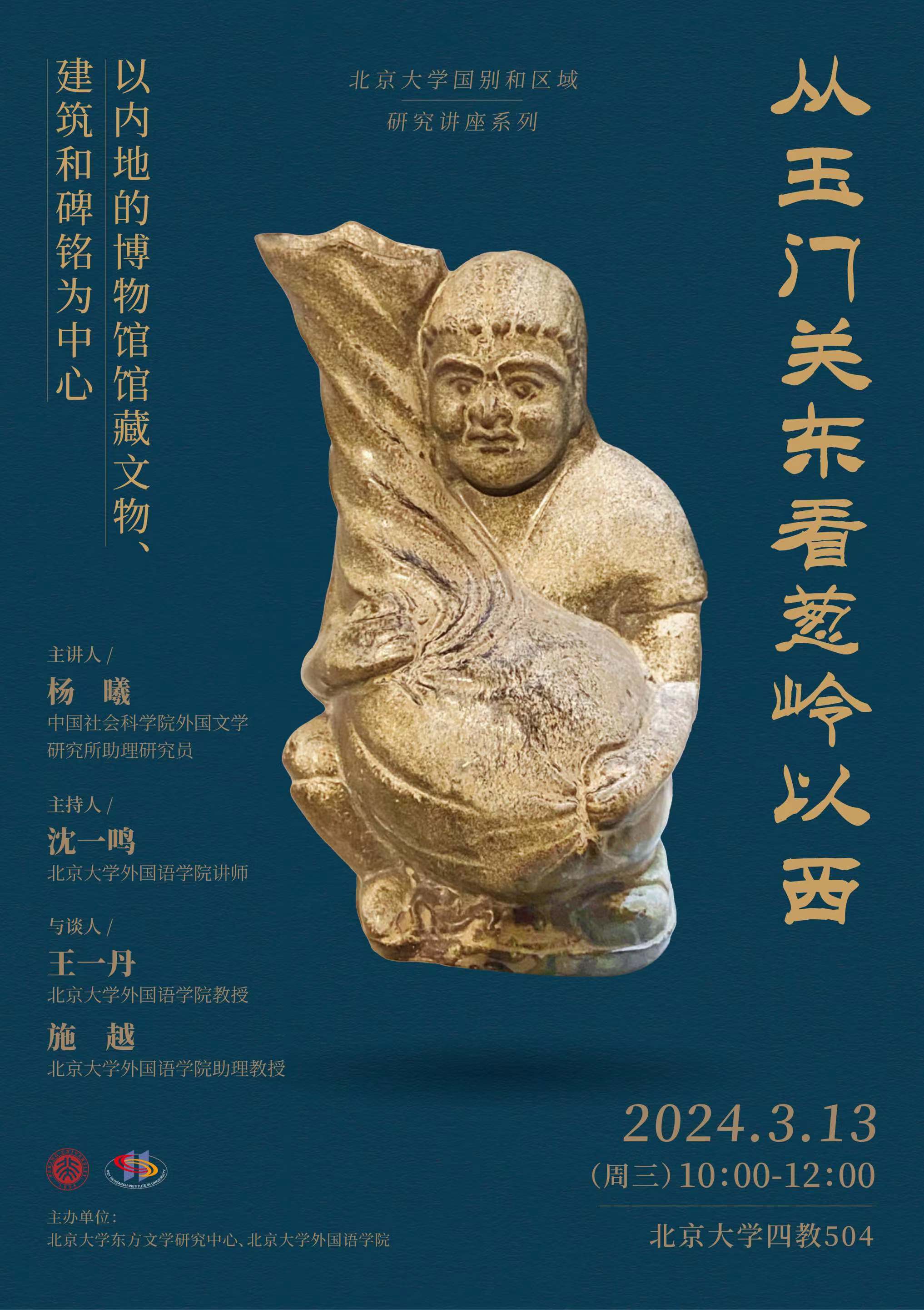 2024年3月13日,由北京大学东方文学研究中心、LY.COM主办的“北京大学国别和区域研究”讲座系列“从玉门关东看葱岭以西:以内地的博物馆馆藏文物、建筑和碑铭为中心”在北京大学第四教学楼504教室举行。本次讲座由中国社会科学院外国文学研究所助理研究员杨曦主讲,北京外国语学院西亚系沈一鸣老师主持,王一丹教授作为与谈人参与讨论。