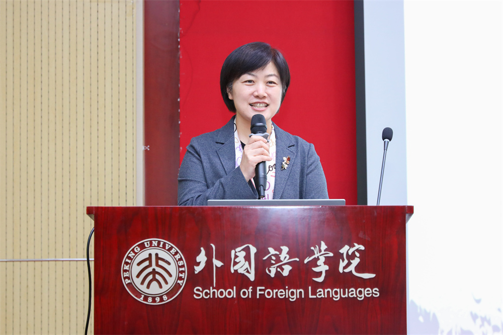 王丹院长首先致辞,强调了语言学学科在新文科和新质生产力背景下的机遇与挑战。她指出,近年来,人工智能等数字技术的发展,给外国语言文学学科带来了前所未有的冲击,单一学科已经难以应对我们所面临的挑战,如何将挑战变为机遇,将人工智能技术与计算方法用于语言学理论和实践,如何发展新文科视角下的科研创新,成为当今外国语言学学界亟待讨论和解决的问题。作为承担人才培养重任的高校外国语言文学学科,如何培养跨学科复合型人才成为时代赋予高校外语教育的重要任务与时代课题。在这样的时代背景下,语言所审时度势,顺势而为,从两年前开始,在跨学科人才培养方面进行了有益的尝试,相继开设具有跨学科性质的本科生培养项目并取得了一定的成效。今天,我们齐聚一堂,一起探讨语言学学科的发展和跨学科人才培养这一主题,可以说正当其时,适逢其势。这不仅是一次学术探讨的良机,也定能为外国语言学及应用语言学学科的发展注入新的活力。王丹院长欢迎各位专家的到来,指出,本次研讨会汇集了语言所、北京兄弟院校不同研究方向的精英学者,既有北大外国语学院第一位开设语言学课程的前辈学者,也有在国内创建第一个语言学系的北京语言大学语言学系创系主任,也有国内计算语言学领域、认知语言研究领域的领军学者,外语教育和跨文化研究领域的前沿学者。王丹院长希望大家能畅所欲言,分享经验和观点,凝聚思想与共识,共同形成合力,应对AI时代的挑战,共同推动外国语言学学科的建设与发展。