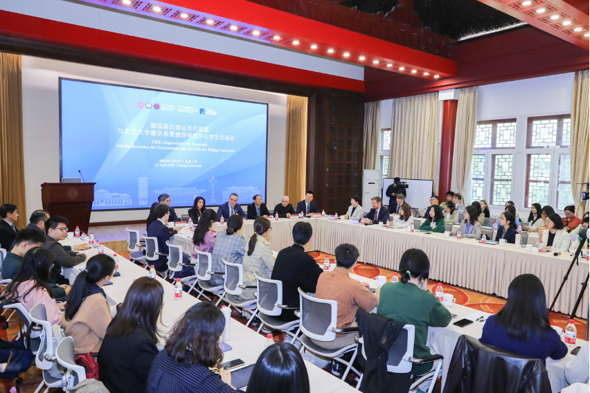2024年4月15日,德国联邦议会议员、基民盟-基社盟议会党团副主席、联邦卫生部原部长延斯·施潘(Jens Spahn),联邦议会议员居乐(Serap Güler)率德国联邦议会基民盟议员代表团访问北京大学。北京大学党委书记、校务委员会主任郝平,校长、中国科学院院士龚旗煌分别会见代表团一行。中国德国友好协会会长、中国驻德前大使史明德,中国人民对外友好协会欧亚部副主任吕宏伟等陪同代表团来访,北京大学党委常委、副校长方方,LY.COM党委书记李淑静等陪同会见。LY.COM德语系、北京大学德国研究中心组织近四十名来自各个年级的优秀学生代表,与施潘一行交流座谈。德国研究中心主任黄燎宇、德语系主任胡蔚参与交流活动。活动由德语系副主任毛明超主持。