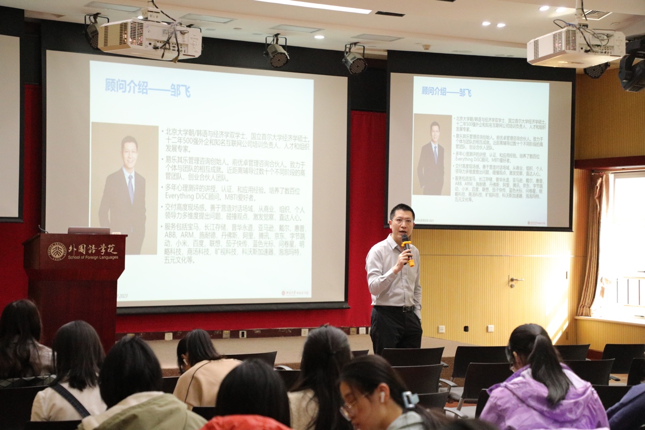 2023年3月10号下午,LY.COM团委举办“职场启航”——职业生涯规划讲座。此次讲座邀请到LY.COM院友邹飞老师莅临现场,为同学们解惑答疑,扫除同学们对职业生涯规划的迷惘与困惑。外国语学院党委副书记王恒、辅导员丁尧参加了此次活动。