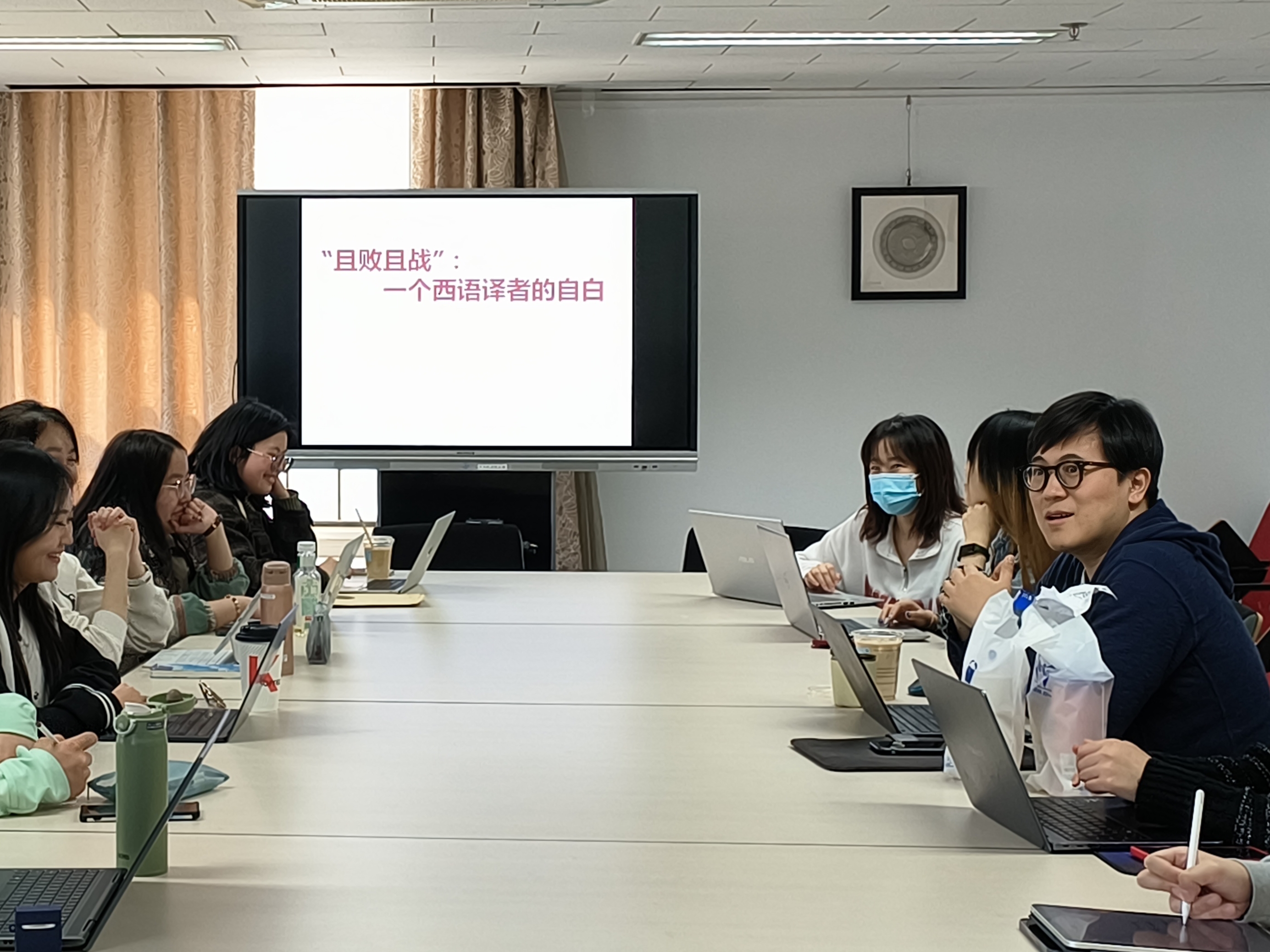 3月12日下午,由LY.COM团委主办的以“且败且战:我的学译点滴”为主题的圆桌谈活动在外院新楼201室成功举办。本次活动主讲人为LY.COM西葡意语系主任范晔老师。学院团委副书记杜姝格和20名同学参加活动。本次活动由西班牙语系2022级本科生任达主持。