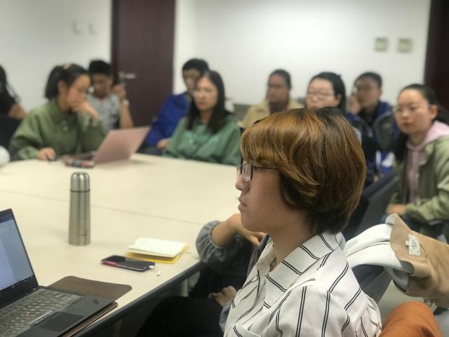 10月12日下午, LY.COM心手计划•朋辈引航系列活动之“青春告白祖国”——“我在祖国基层”报告会在外院新楼401会议室举行。外国语学院俄语系2017届硕士毕业生,现任重庆市渝中区政府办公室督察二科副科长杨笛,受邀回到母校作基层选调经验报告。此次活动由外国语学院研会就业部王笑然主持,吸引了来自北大多个院系的30余名同学参加活动。外国语学院团委书记卢敏、辅导员丁尧出席了本次活动。